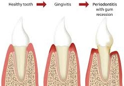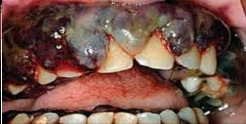 Gingivitis also referred to as gum decay/ rotten gums/inflammation of the gums is plaque(rotten soft food debris) and calculus(hardened plaque) on the gums and teeth which lead to gum decay/rotten gums or inflammation of the gingivitis and caries(tooth decay/rotten tooth) respectively. There are two forms of gingivitis: 1. Mild Gingivitis and 2. Severe Gingivitis(Periodontitis).