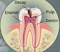 Caries otherwise know as Tooth Decay/ Rotten Tooth which occurs when specific types of bacteria produce acid that destroys the tooth’s enamel and its underlying layer, the dentin.